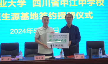 本科专业的办学特色与优势,对中江中学输送了一批又一批优秀生源到四川农业大学表示衷心感谢。同时,申琼书记鼓励同学们提前做好生涯规划,根据自己的兴趣选择自己喜欢的专业,不断努力,为自身争取更多的选择,希望更多中江学子报考四川农业大学等211名校,立大志、做大事。活动现场,申琼书记和中江中学党委副书记、校长顾成安共同签署了共建优质生源基地协议书,在职业规划、专业辅助填报等多方面达成共识,举行了“优质生源基地”授牌仪式。