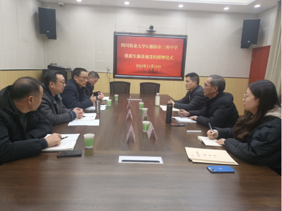 座谈会上,周建华对申琼一行的到来表示欢迎并介绍近三年德阳籍学生在四川农业大学录取的情况,三所中学的相关负责人介绍了学校的办学历程、师资队伍、历年高考的情况。随后申琼介绍了学校的历史沿革、发展概况、招生专业等情况,重点介绍了学校优势学科、人才培养、毕业生就业情况等内容。考试院和三所中学的领导与我校就中学高校协同育人、中学生生涯规划指导和志愿报考等工作进行了深入交流。与会领导纷纷表示,优质生源基地的建立和后续各类招生宣传活动,拉近了大学与中学的距离,让更多优秀学子“走近”四川农业大学,了解自己向往的大学与专业。