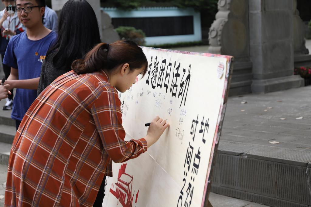团委带领团员代表走进都江堰烈士陵园,开展 “青春心向党.建功新时代”纪念五四运动100周年主题团日活动。青年团员开展了团旗下的演讲、重温入团誓词等纪念活动。优秀学生标兵、国家奖学金获得者、保送重庆大学硕博连读的陈安钰同学在演讲中表示:“作为当代青年,应以勇于承担,不懈奋斗,励精图治、负重前行的精神去阐释青年力量,在新时代继承和弘扬五四精神,争做担当民族复兴大任的时代新人。”