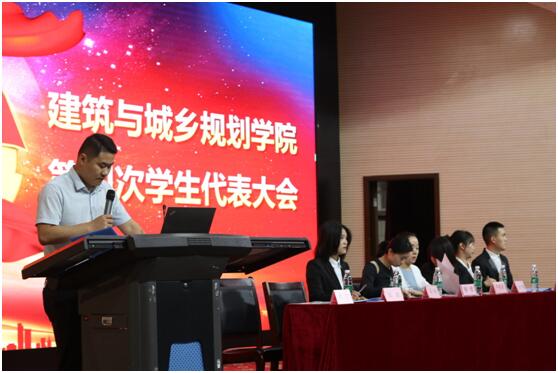 第四次学生代表大会在图书馆报告厅举行,会议由分管学生会组织的院团委副书记周宁老师主持,杨雪老师、车亮亮老师、马双老师、第七届学生会主席团、以及全院103位学生代表出席会议。