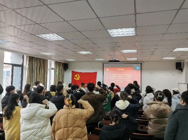 之后,周宁带领全体参会人员进行入党宣誓,举起的右手是各位党员同志肩负起的重担,口中的誓词是各位党员同志决心的见证,坚定的眼神是各位党员同志忠诚的彰显,誓词的每一个字都刻在了各位党员同志的心里。宣誓后,王雨欣同志代表新发展的中共预备党员发表宣誓感言,她表示,此次入党宣誓是十分具有仪式感及使命感的环节,入党宣誓是一名党员政治生命开始的象征,体现了一个共产党人为实现人生最高价值所做出的无悔选择,要永远记住这个神圣的时刻,永远记住已向党和人民许下的郑重承诺,把入党誓词作为自己终身的追求、终身的修养和终身的实践。