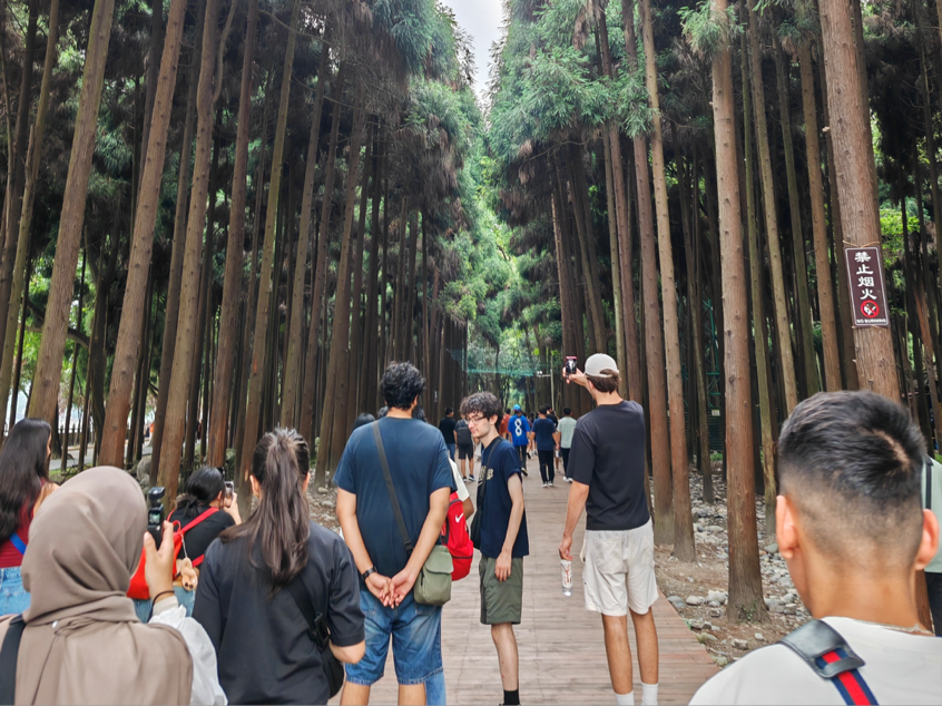 志愿者的陪同下,澳洲学生们在清新怡人的空气中漫步于古街,沿途欣赏古老的建筑和街巷,感受浓郁的历史氛围。古街的每一块青砖、每一扇木门,都仿佛在诉说着岁月的故事,令澳洲学生们流连忘返。接着,大家进入了闻名遐迩的都江堰景区,展开了一场别开生面的文化探访之旅。在导游的详细讲解下,同学们了解了都江堰水利工程的起源、发展及其在历史上的重大意义。这座举世闻名的水利工程,历经两千余年的风雨洗礼,依然发挥着巨大的作用,彰显出中国古代劳动人民的智慧与创造力。同学们登上秦堰楼,站在高处俯瞰整个都江堰水利工程,壮丽的景观尽收眼底,令大家叹为观止。通过此次实地参观学习,同学们不仅拓宽了知识视野,更深刻领略了中国古代工程技术的伟大与恢宏。