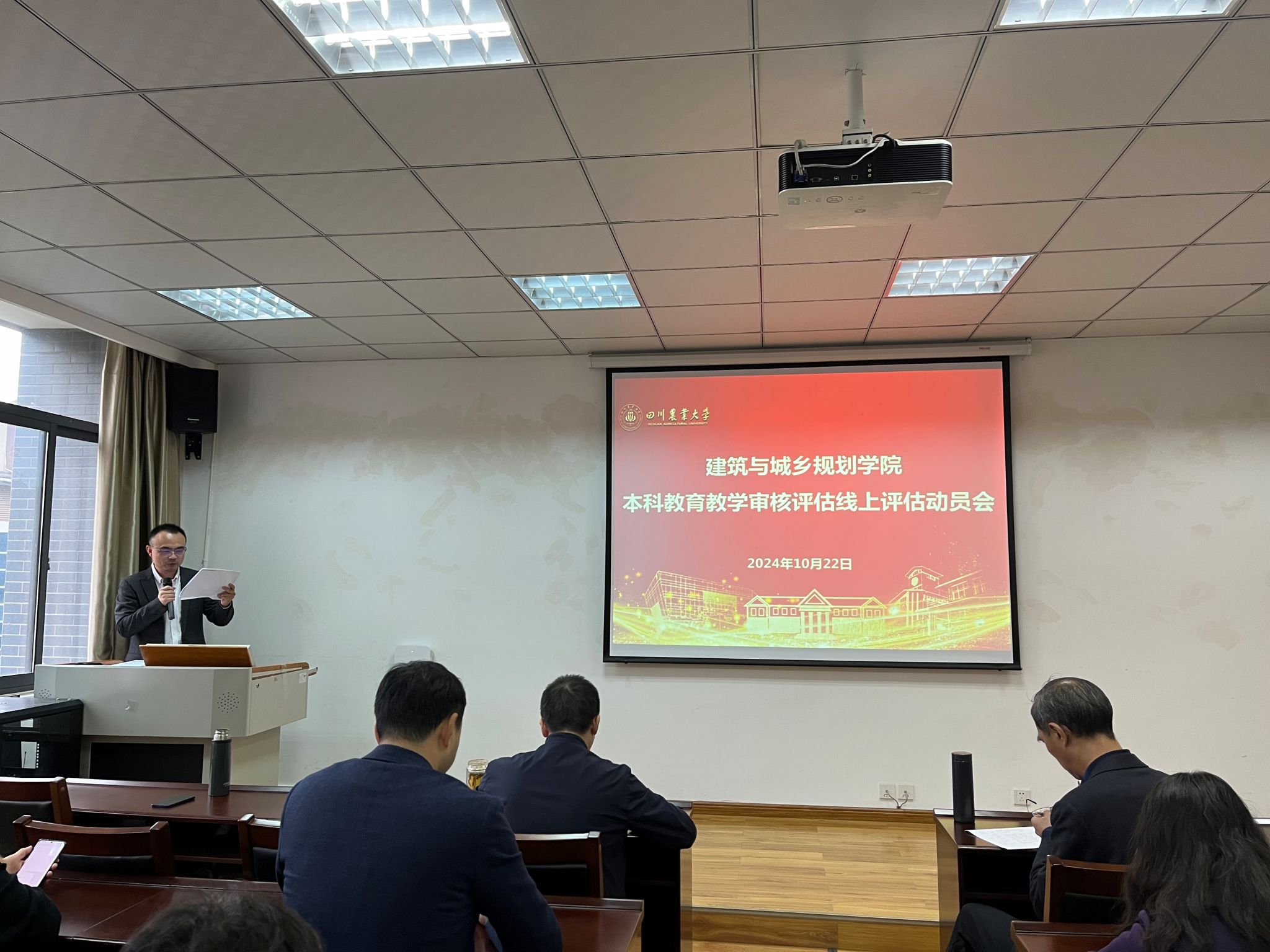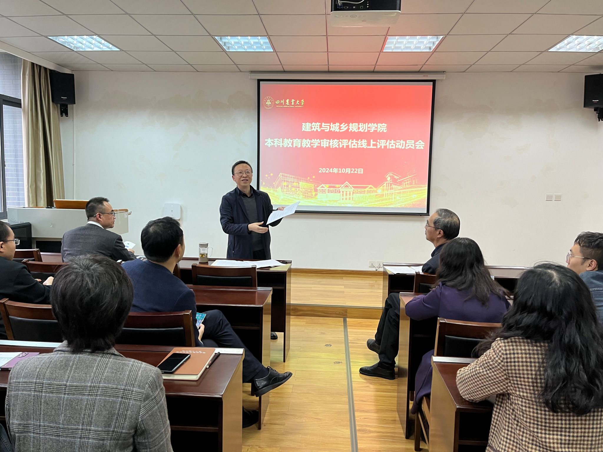 在2C405会议室召开本科教育教学审核线上评估动员会,全院教职工参加会议,大会由党委书记申琼主持。