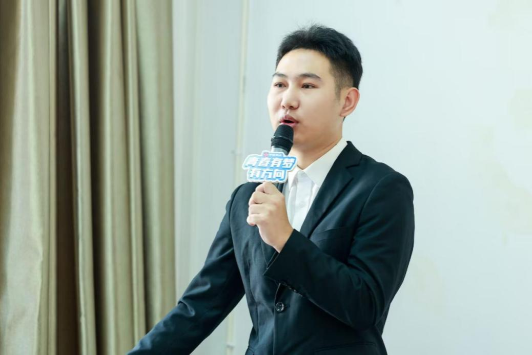 毕业生吕学聪上台发言。他结合自己的亲身经历,分享了从迷茫到清晰目标、从零到一的成长历程。他以真诚的话语和宝贵的经验,向同学们传授了平台选择、面试技巧以及职业发展路径等方面的实用建议,为他们的未来规划提供了有力指导。