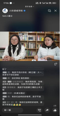此次直播三个部分环环相扣,为同学们提供了切实可行的填报建议此外,针对跨专业调剂、复试面试等难点问题,老师们也给出了专业的解答,赢得了学生们的一致好评。本次直播效果远超预期,累计观看次数达到了1012人次,点赞量突破两万。尽管这场直播主要针对25届考研学子,但也有不少低年级学生和家长也进入了直播间,提前了解考研调剂的流程与策略。其中一位城规专业大一同学的家长申请连麦,向车老师咨询大学规划等相关问题并得到了细致解答后留言表示:“孩子未来考研规划有方向了,为这样负责的好老师点赞!”