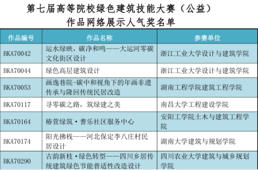 近日,第七届“高等院校绿色建筑技能大赛(公益)”全国决赛公布获奖名单。看球直播app-看球直播app下载