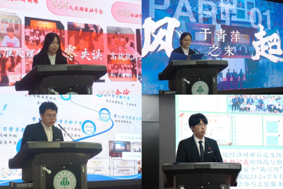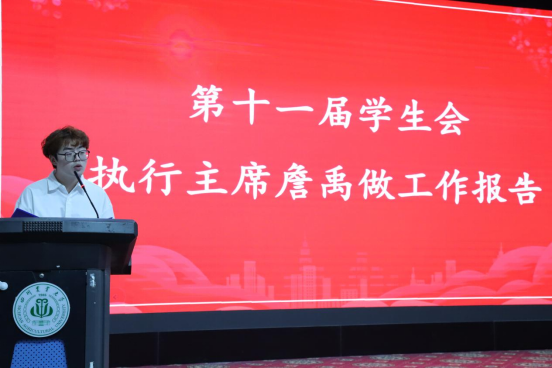 第十一届执行主席詹禹进行本届院学生会工作成果汇报,强调下阶段工作重点,对未来规划与发展方向做出工作展望。他提出,学生会当下应完善育人体系,对院内学风进行整顿、创新,并优化看球直播app