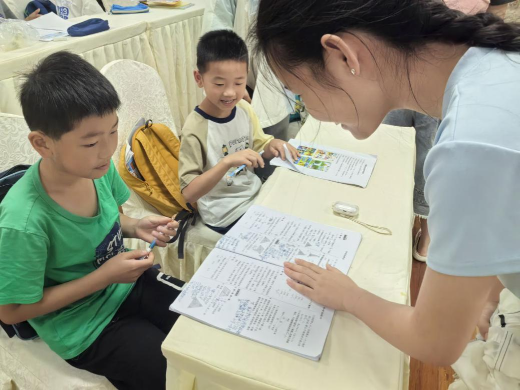 图为"堰苗耕读童心成长计划"团队开展每日暑假作业辅导活动