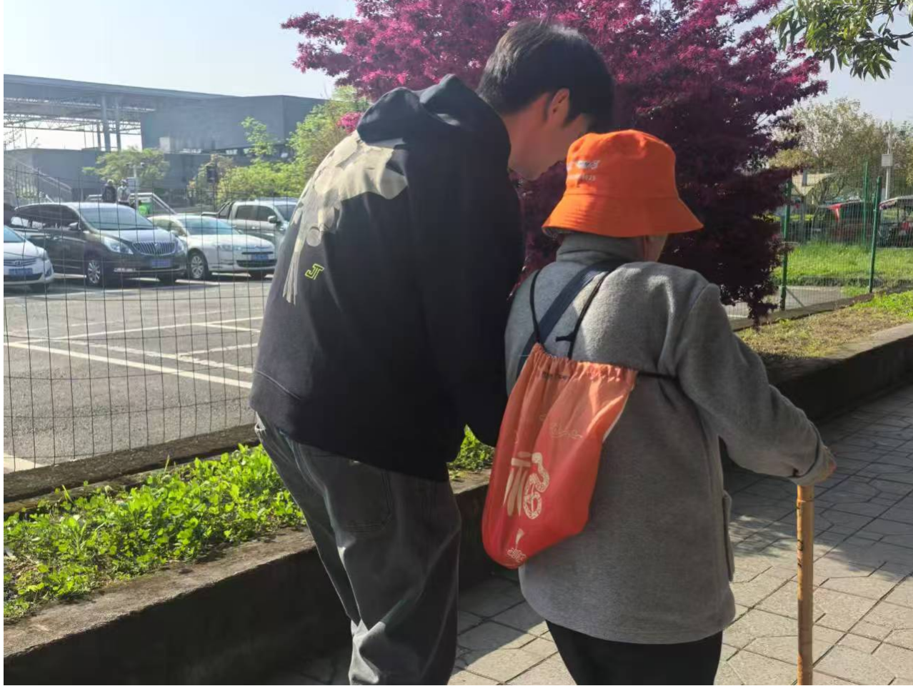 清晨8点,阳光倾洒。20名学生志愿者准时来到养老院,在工作人员调配下,迅速与老人结成一对一陪伴小组。他们要带老人从养老院前往11公里外的青城山景区,为此精心规划了公交、轨道结合的出行方式,比常规出行碳排放减少约38%。