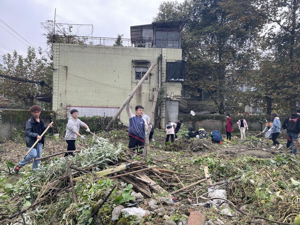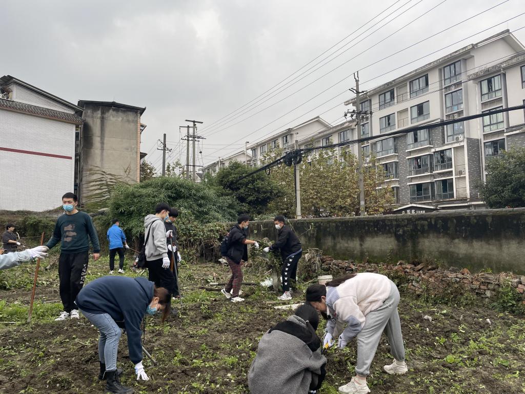 老师的带领下,支部同志拿着工具来到捡种地,该地块之前因缺乏清晰的管理划分,周边居民随意在地里搭栅栏种蔬果,并将砂石、枯枝、杂物任意堆砌在田中,田间杂乱无章。党员以支部为单位,分工有序地进行拆栏、搬石头、除草、刨坑……每个人的汗水挂满了脸颊、浸透了衣裳。但大家并没有因此抱怨或是放弃,而是相互打气、勉励坚持。
