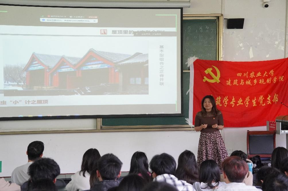 于1219教室举办“匠心铸魂,古建传承”主题党日活动,吸引了150余名入党积极分子、预备党员等同学参与。建筑系李静教授和廖勇超老师主讲,带领同学们深入感受古建筑的独特魅力,体悟中国匠心精神。