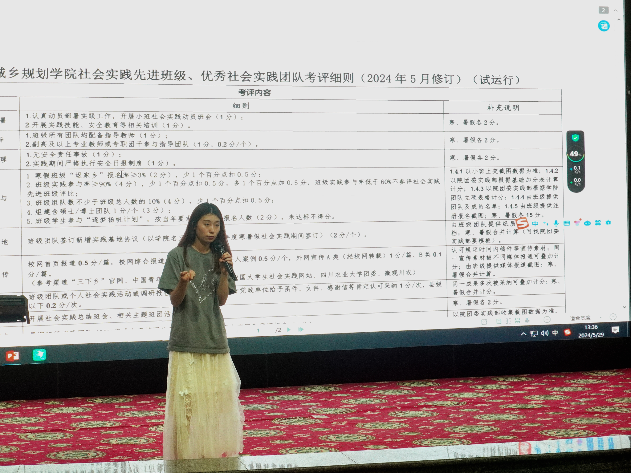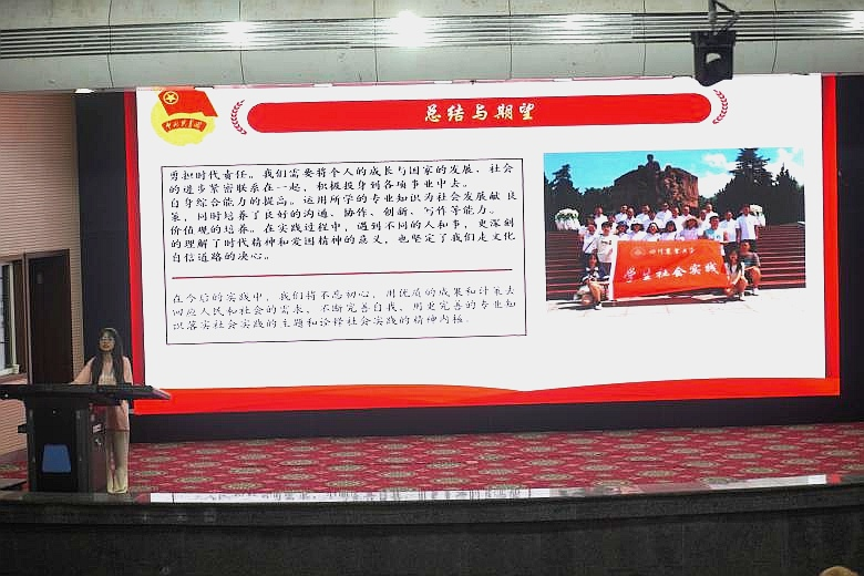 过往社会实践获奖情况,并以“建承华美”实践团队、藏语汉、古堰之音、微光团队、耆老无忧、雷波专项及筑梦成锦队7个优秀团队为例,讲解社会实践的过程、意义及成果。针对社会实践和课程实践相关文件、考评细则,“互联网+”及大挑小挑相关文件,马双老师为同学们进行详细解读,并鼓励同学们将社会实践与科研科创赛事有机结合,将实践成果转化为科技创新竞赛作品。此外,她以陈义根、黄一昕、李香雪为优秀案例,阐述了社会实践对大学生就业的重要性。她强调,团队当以优秀案例为镜,勇于在实践中见风浪、长才干、做贡献,唯有不断投身于精良的社会实践,方能全面提升自身综合能力,为社会发展添砖加瓦。