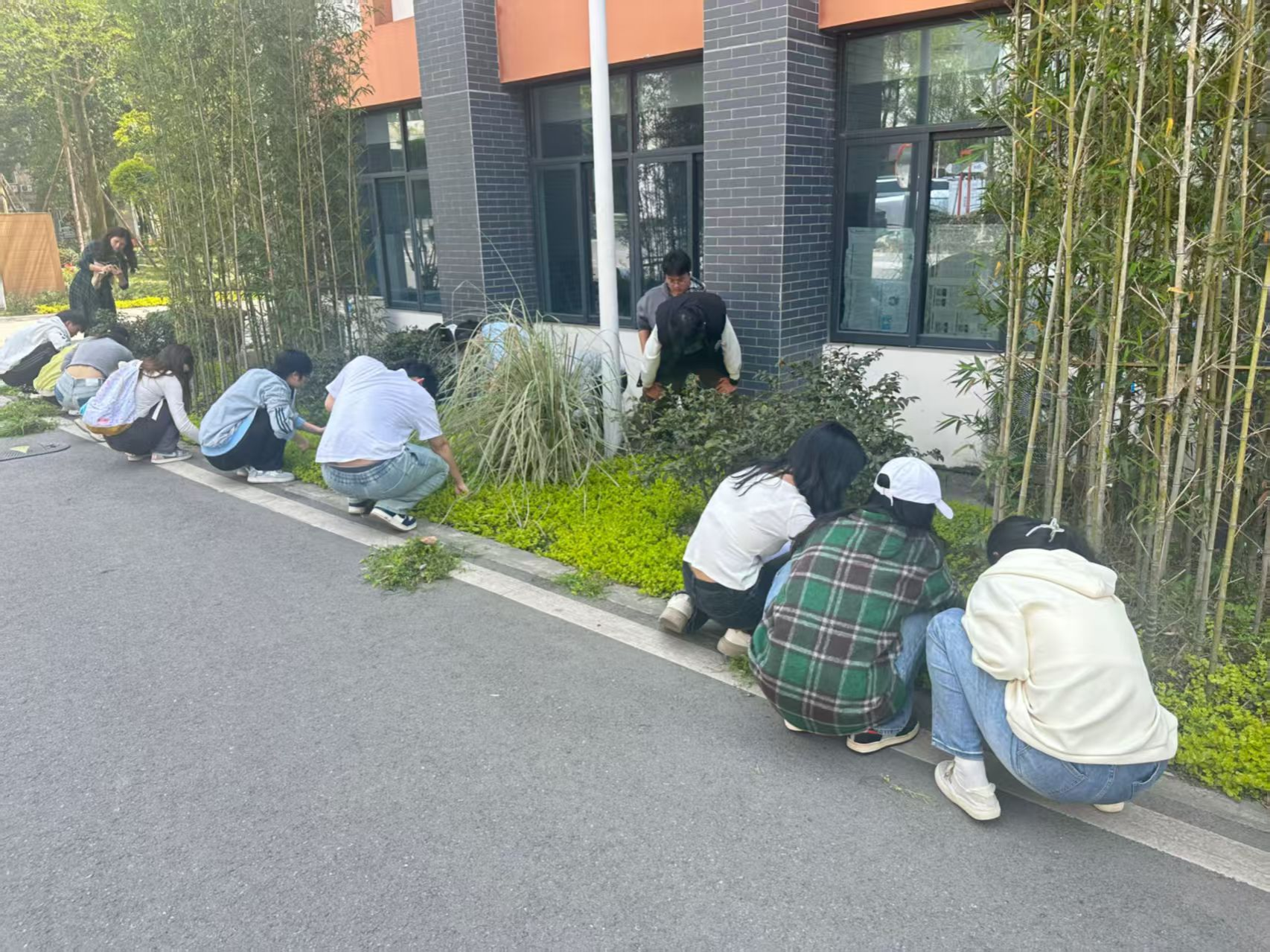 学生会组织100余名师生开展春季除草劳动活动。通过清理杂草、学习植物知识,践行“绿色校园”理念,深化对劳动教育的理解。