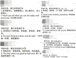 本次活动以线上形式开展,工作人员在活动群内发布双语打卡材料,参与活动的同学在QQ空间发布手写材料并配上相应的文字,进行十五天及以上的打卡记录。参与晨读不但可以帮助同学们培养早起习惯,还能让同学们在晨读中提升文化素养、更快进入学习状态。
