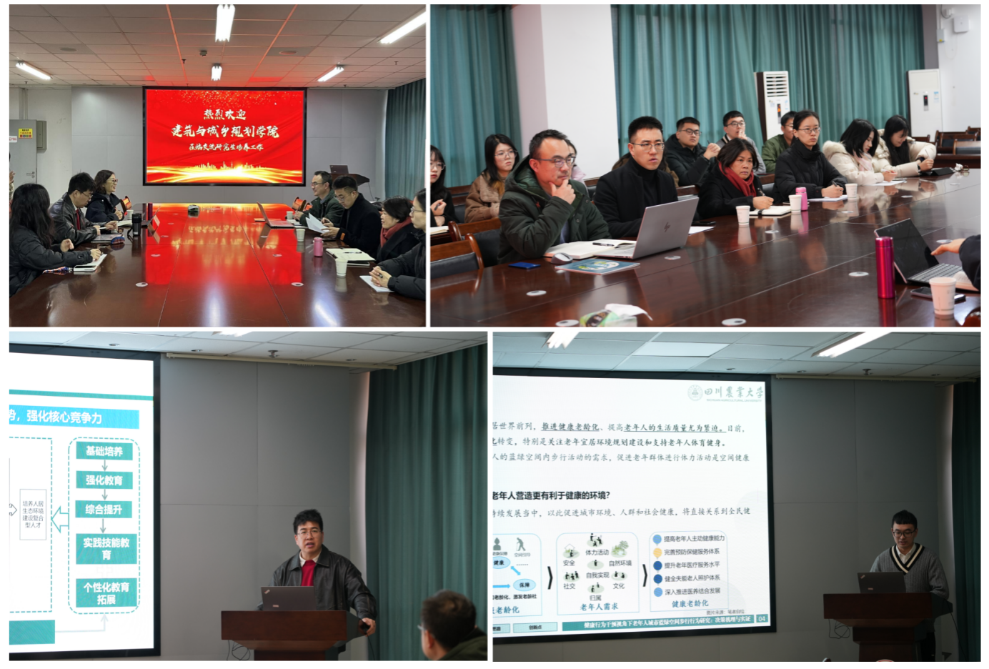随后,风景园林学科点秘书吕冰洋分享了风景园林硕士学位点周期性合格评估的经验成果,城乡规划系主任唐晓红、城乡规划学科点秘书万将军等分别分享了各自在学术研究、实践教学等方面的经验做法。双方教师就学科建设、学科发展方向、学生培养等多个方面展开深入探讨。双方学生代表也积极展示了自己的研究内容,展现出学生们在学科交叉领域的积极探索和创新思维。